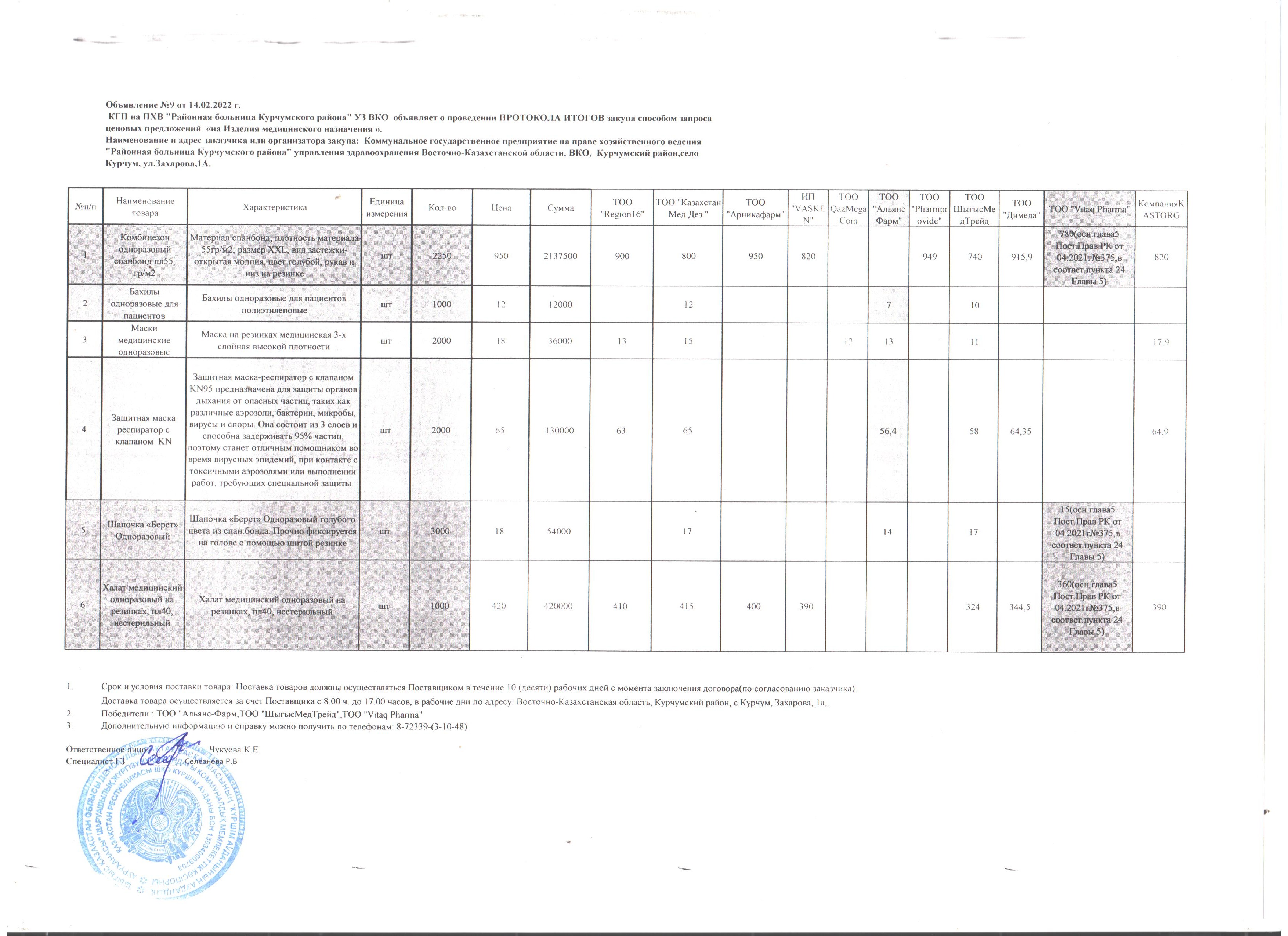 КГП НА ПХВ "КУРЧУМСКАЯ ЦЕНТРАЛЬНАЯ РАЙОННАЯ БОЛЬНИЦА" УЗ ВКО