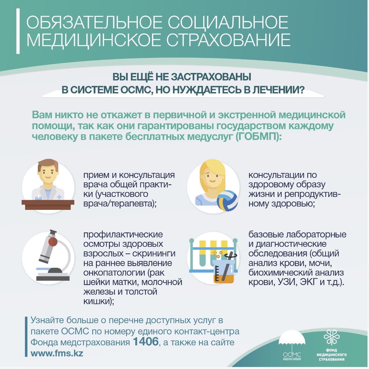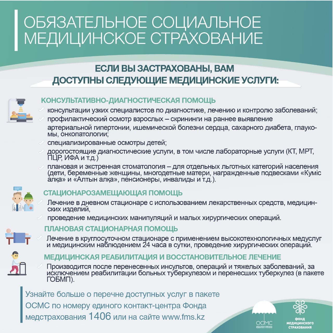 ОСМС гарантирует всем застрахованным гражданам Казахстана независимо от пола, возраста, социального статуса, места проживания и доходов равный доступ к медицинской и лекарственной помощи.